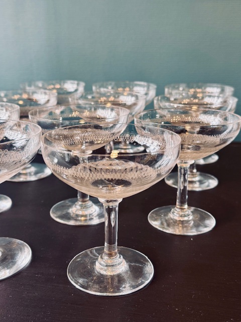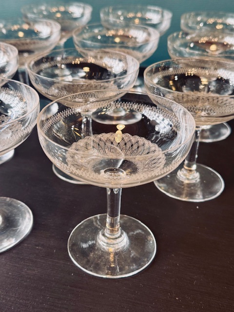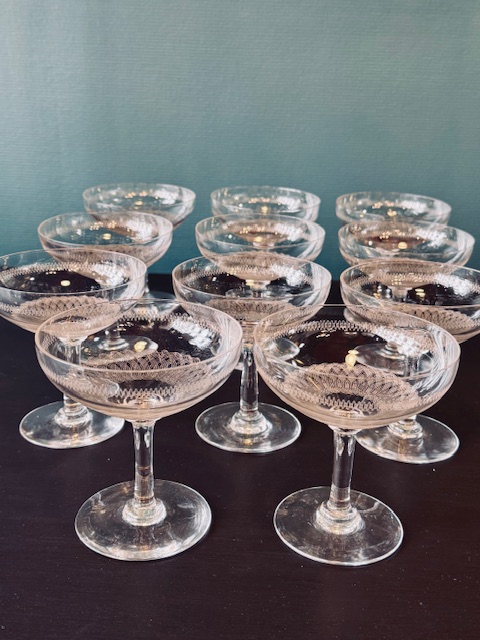 11 coupes à champagne en cristal ciselé
