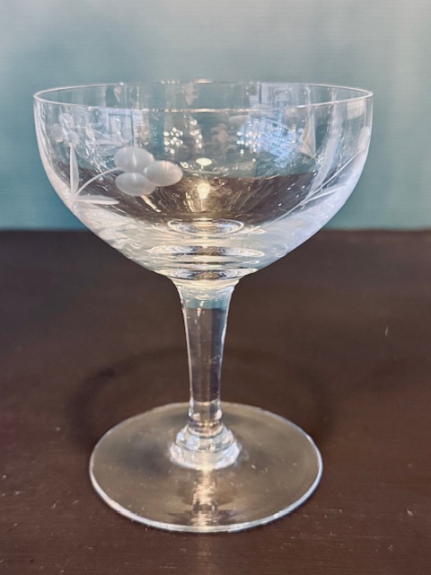 coupes à champagne en verre ancien à décor de fleurs ciselés