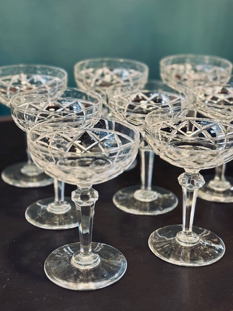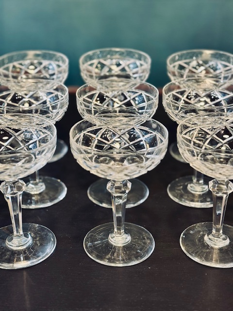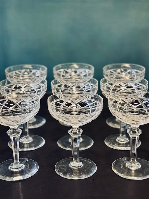 9 coupes à champagne cristal taillé critallerie de Lorraine