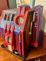 Authentique machine à sous américaine, Pace Comet, de 1936. Pièce de collection en excellent état de fonctionnement, avec son distributeur à bonbons sur le coté qui est particulièrement rare.