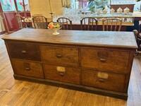 Très beau meuble de métier double faceà tiroirs. Parfait comme îlot central pour une boutque ou une cuisine.